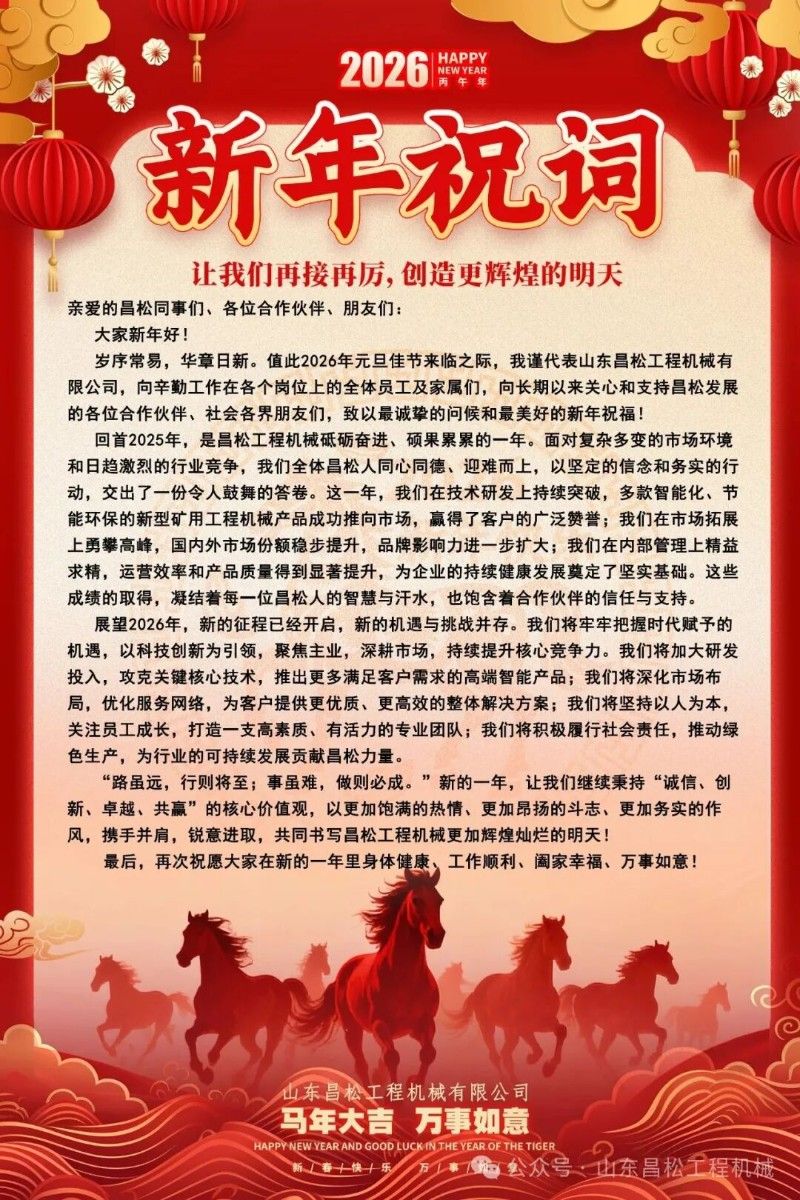 1. ?山東昌松工程機(jī)械石總攜全體員工恭祝新老客戶們:2026年馬年行大運(yùn),馬到成功?山東昌松工程機(jī)械石總攜全體員工恭祝新老客戶們:2026年馬年行大運(yùn),馬到成功